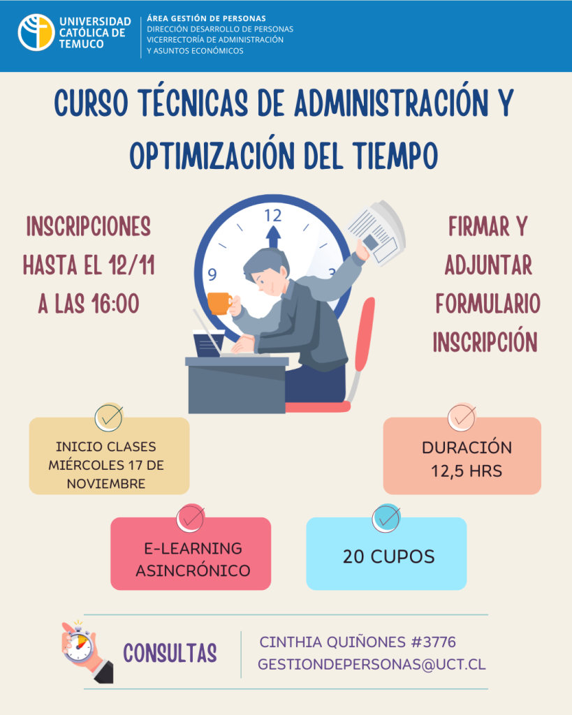 La Dirección de Desarrollo de Personas, tiene el agrado de invitarles a participar del siguiente curso: